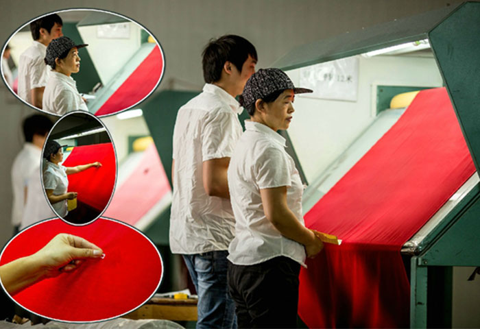 尤紅潔師傅正在驗(yàn)布
