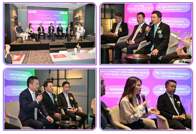 圓桌研討會上,中山市游戲游藝行業(yè)協(xié)會會長、廣東金馬游樂股份有限公司總經(jīng)理李勇、泰國臺球協(xié)會會長Mr.Suntorn Jarumon、MACROMOS AIRSTAR首席執(zhí)行官Mr.Sakol AthiKarnGumJorn、Solid enterprise業(yè)務發(fā)展主管Ms.Nichanan Tantasirin、Gabenate Co., Ltd.聯(lián)合創(chuàng)始人Mr.Labhon Thomnao、TON Praram3品牌創(chuàng)始人 Mr.Palipon Sombun等嘉賓圍繞“體育商業(yè)經(jīng)濟助力下泰國旅游娛樂的未來”主題展開深度對話。各方觀點碰撞交融,為產(chǎn)業(yè)發(fā)展提供了兼具前瞻性與實操性的思路建議。